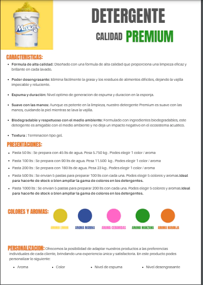 Caracteristicas de nuestra pasta DETERGENTE PREMIUM: